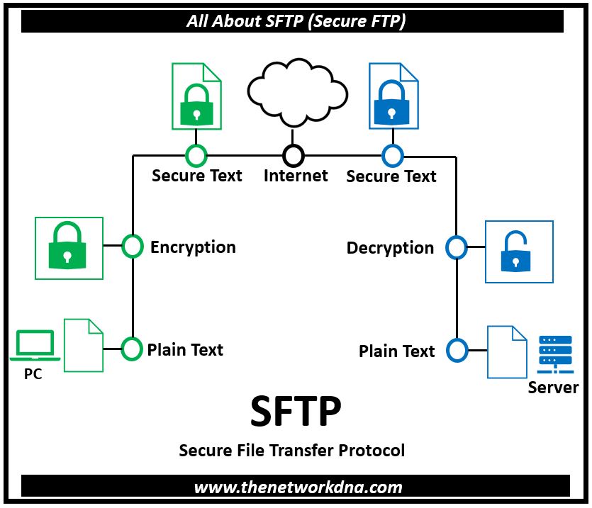 SFTP (Secure File Transfer Protocol, often known as Secure FTP) is a widely used method for securely transmitting data between remote systems. SFTP was created as an extension of the Secure Shell protocol (SSH) version 2.0 to improve secure file transfer functionality.SFTP provides file access, transfer, and management capabilities without the use of command or data channels. Instead, both data and commands are encrypted and transmitted in specially prepared binary packets via a single, secure connection via SSH.