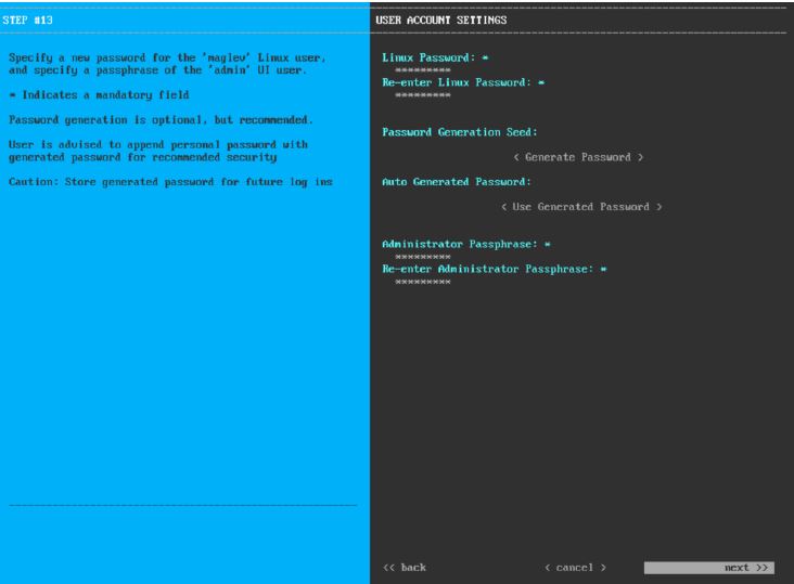 You can skip for the cluster virtual IP address, so now we will move with the setup of the password required. Enter the passwords for the operating system “Linux password” and the “Administrative Passphrase”