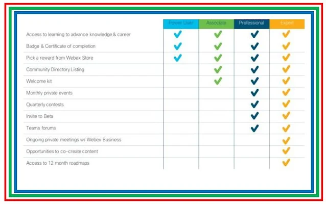 Well Webex categorized this webex Ambassador program in various levels starting from the user to Expert as shown below