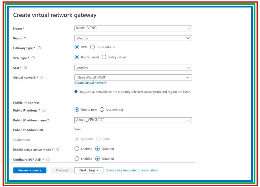 Following the specification of the IP address of the on-premises VPN device to which you will establish a connection, you give the site a name that Azure may use to identify it.