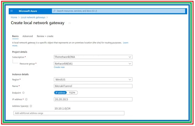 Step 3: As you are going to use Meraki MX device to create the tunnel with the Azure Gateway. you need to put the same shared key that you specify when creating your Site-to-Site VPN connection.