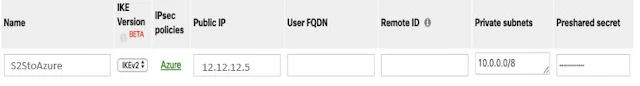 These are the settings on the Azure side, Now lets create a site-to-site profile in the Cisco Meraki and make a tunnel there.