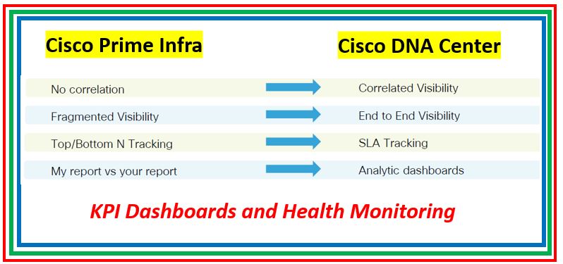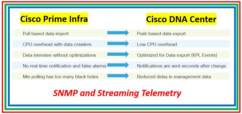 I will not explain this as the below picture will clarify the exact difference how Cisco Prime and Cisco DNA Center is doing the Monitoring.