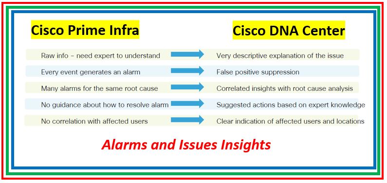 I will not explain this as the below picture will clarify the exact difference how Cisco Prime and Cisco DNA Center is doing the troubleshooting