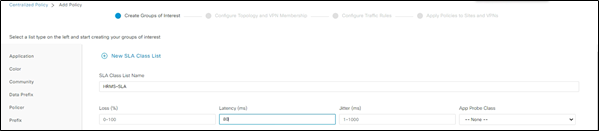 Once the relevant list is created time to define the traffic rules for HRMS application. We are going to define a rule stating all the HRMS application traffic should use MPLS link (private 1 TLOC) and should use the HRMS SLA as per the figure 5. In case of SLA breach perform the load balancing across other link as well as we don’t have any link better than the MPLS ☹.