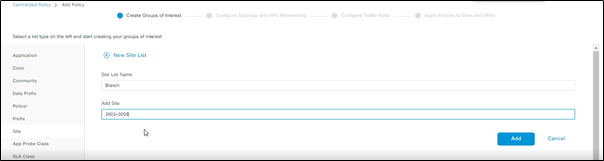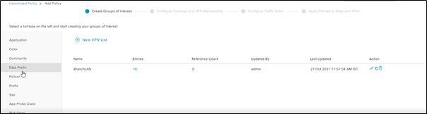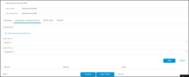 - VPN list – this list contains the list of VPNs on which App-aware routing policy will be implemented