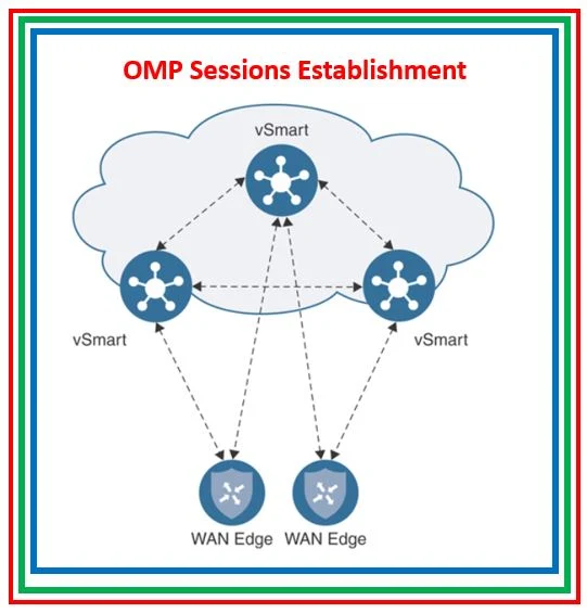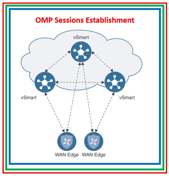 OMP sessions are established between the vSmarts and vSmart and Edge routers. There is NO OMP session between the Edge routers.