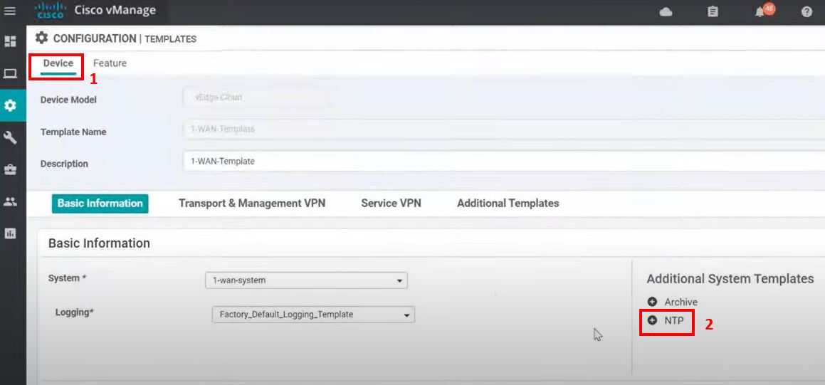 Cisco Viptela SDWAN: Configuring or editing the NTP server on vEdge via vManage