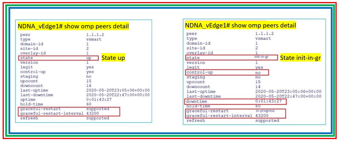 So the purpose of the Graceful restart is that it allows OMP peers continue operating if one of the vSmart/vEdge is unavailable may with due to some reason as a peer.