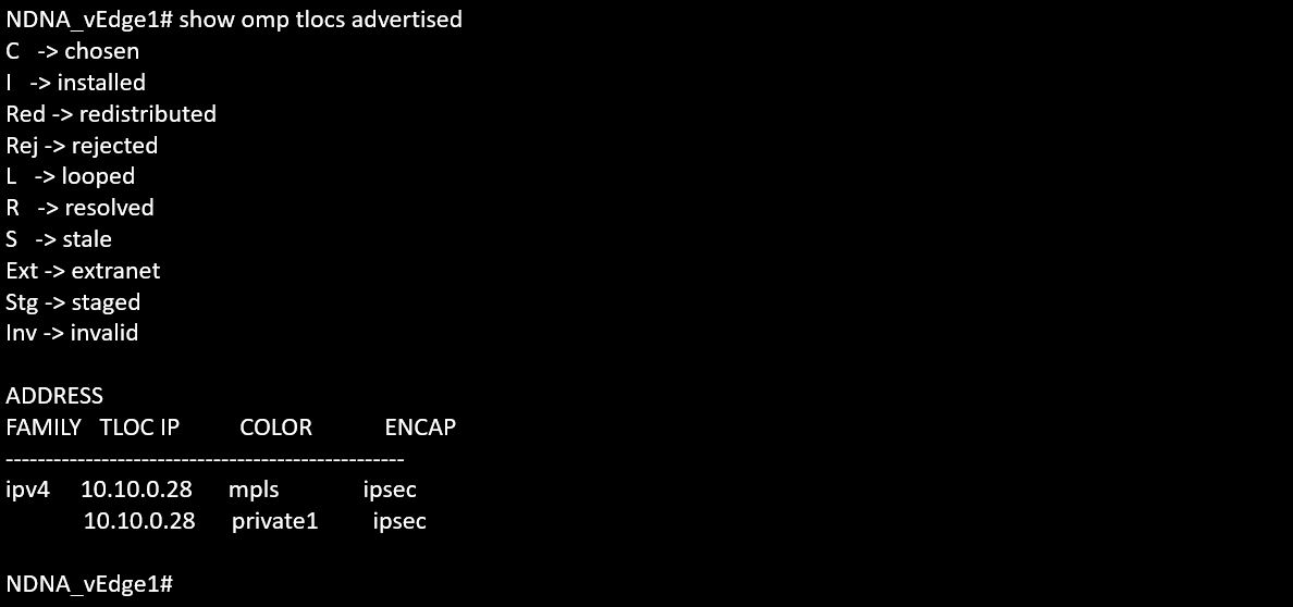 - Source and Remote TLOC color: This is useful to know what TLOC you are expecting to receive and send.