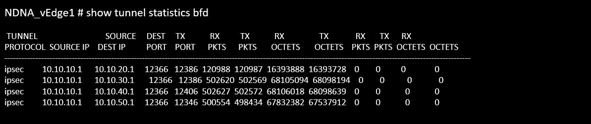 NDNA_vEdge1# show tunnel statistics bfd