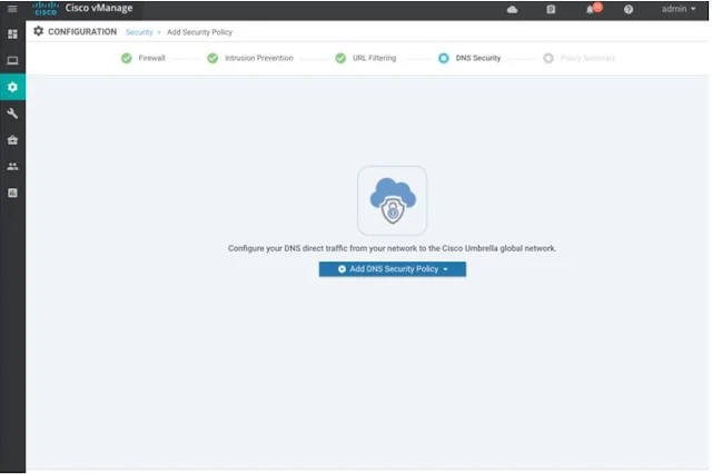 So with the DNS security policy, you can configure your devices with the additional template on the vManage and attach that template with the device as per the normal process.