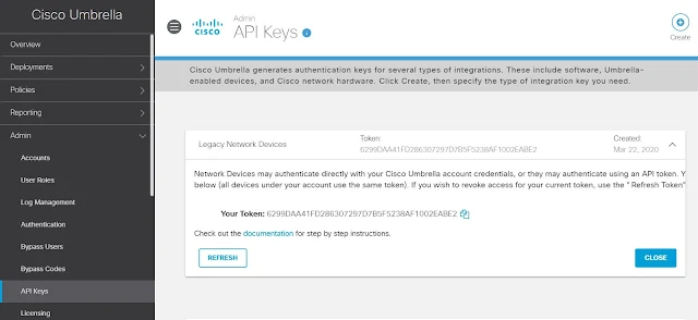 As in above shown image, i generate the Cisco Umbrella API key- Token for the Legacy devices which include Cisco ISR, vEdges and other devices.