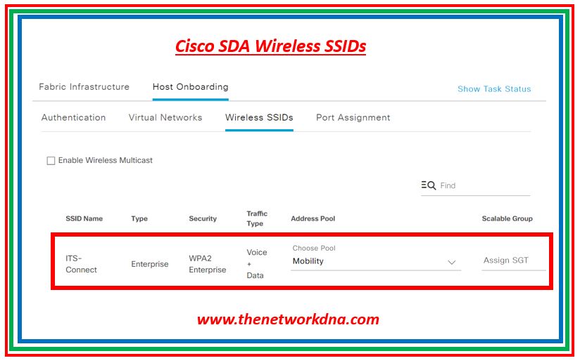 Wireless and wired networks can be managed using SD-Access. As well as applying the same IP pool and VN across wired and wireless networks, SD-Access allows you to apply the same IP pool to both.