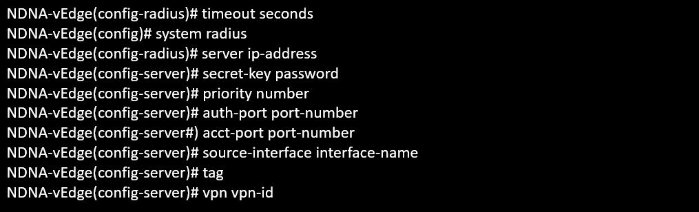 Make sure you configure the Server VPN number if the vEdge/cEdge is in different VPN than the RADIUS Server. If you configure multiple RADIUS servers, they must all be in the same VPN.