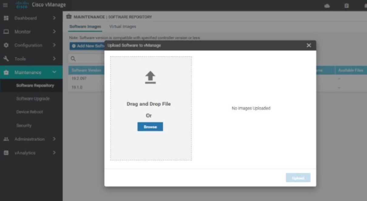 Fig 1.2- Uploading new Software image to vManage