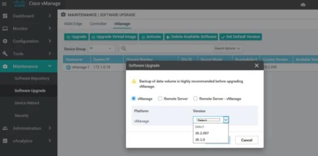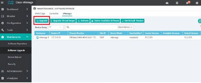 Now go to vManage, go to Maintenance--->SOFTWARE UPGRADE