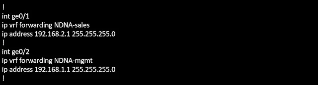 Below is the example of creating VRF instances and aligned with the interfaces on the router