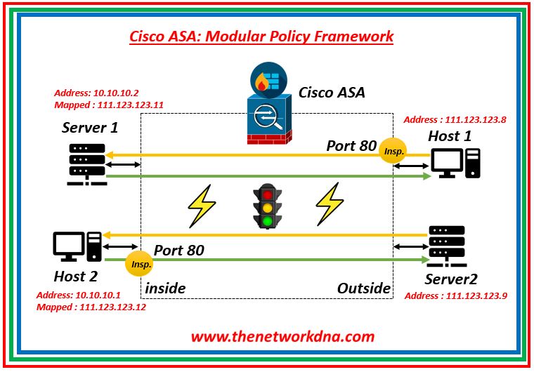 Service-Policy: On an interface or throughout the appliance, the defined policy framework is applied using the Service-Policy component. One Service-Policy is supported globally and by each interface on the Cisco ASA appliance.