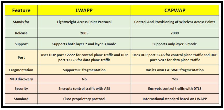 CAPWAP is based on LWAPP, however there are several significant variations to consider. The CAPWAP discovery technique is considerably more effective than LWAPP. Dynamic MTU is a feature of CAPWAP that improves communication between the controller and network.