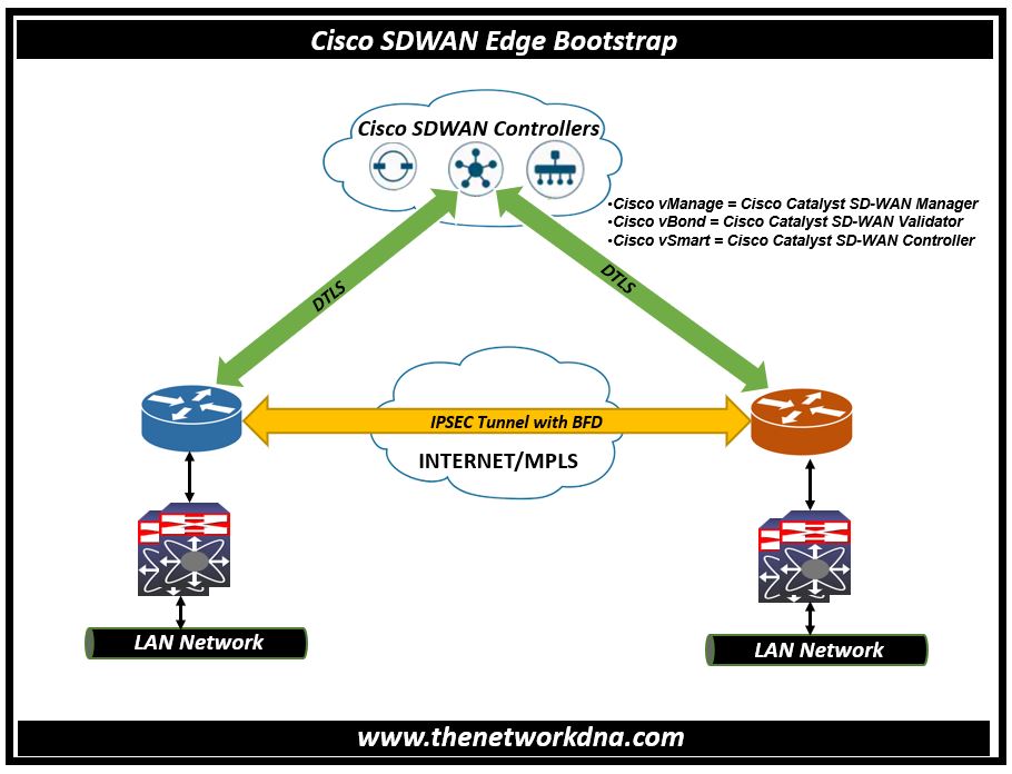 A Cisco Catalyst SD-WAN edge device must first be bootstrapped in order to establish connectivity with the vBond Controller before it can be brought up to join the Cisco Catalyst SD-WAN overlay or fabric.