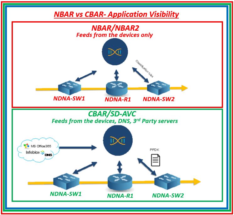 It is important to understand the difference between NBAR and CBAR as the name suggest NBAR stands for Network based application recognition while CBAR is controller based application recognition. Lets talk about these two one by one and will discuss what is important in your network.