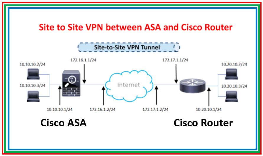 Today I am going to talk about the configuration of Site to site IPSEC tunnel between the Cisco ASA and Cisco IOS based router. I am writing this article as some of you have queries to understand how it works and what will be the configurations on ASA (Cisco Adaptive Security Appliance) and on Cisco IOS based router.