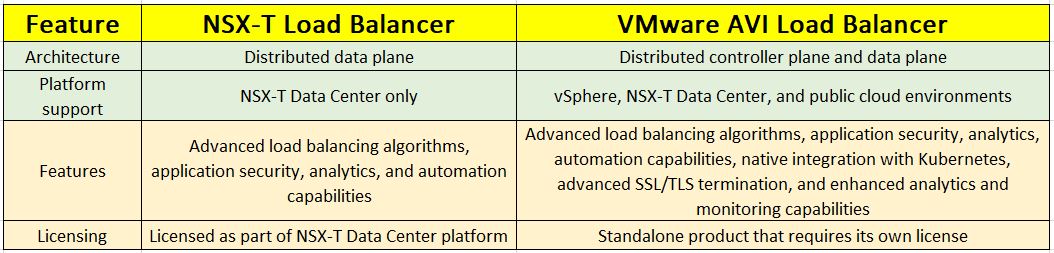 Comparison NSX-T Load Balancer Vs AVI Load Balancer