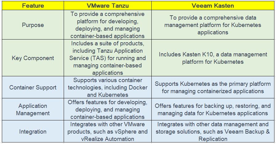 | Fig 1.1- VMware Tanzu Vs Kasten K10 |